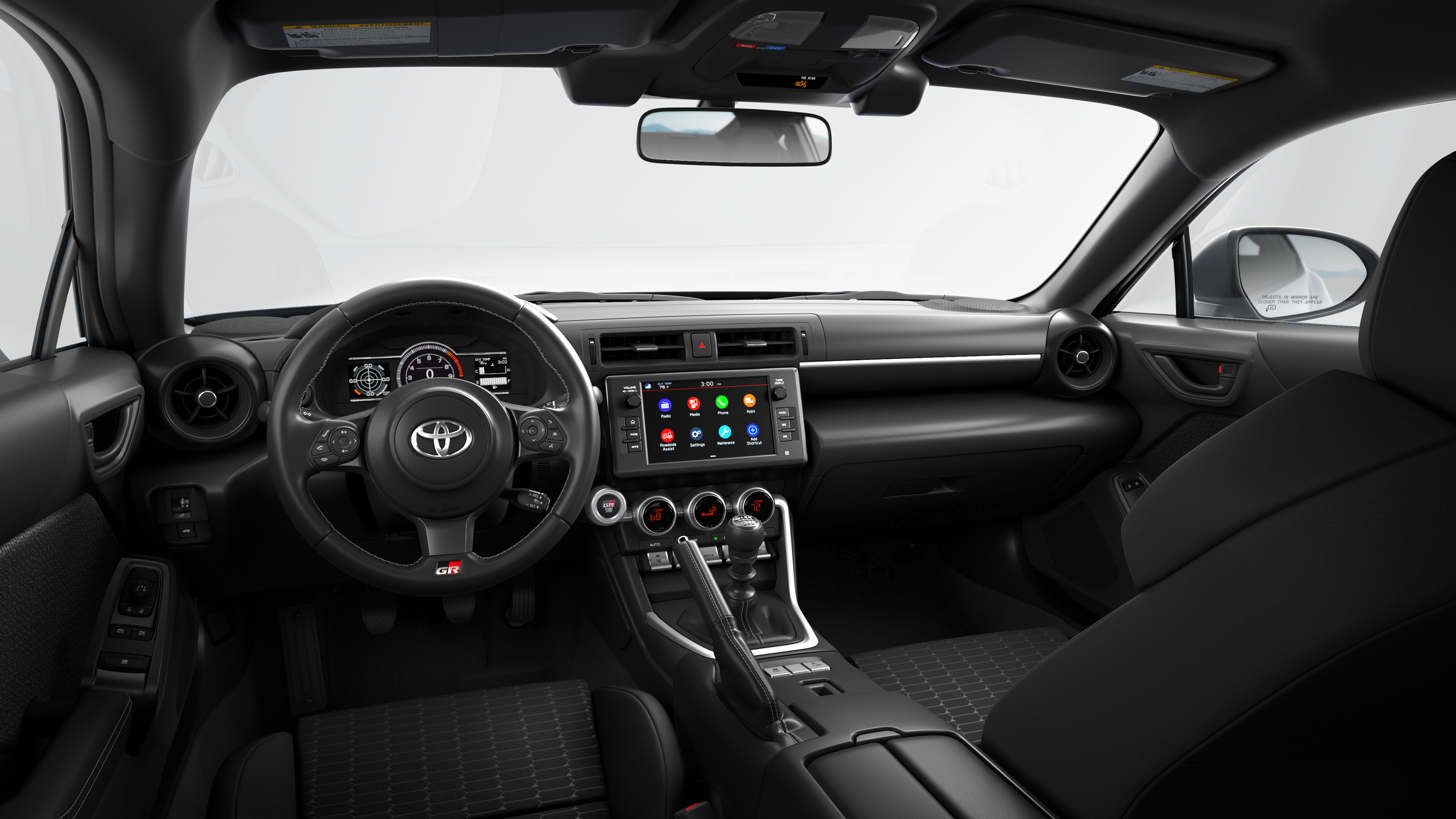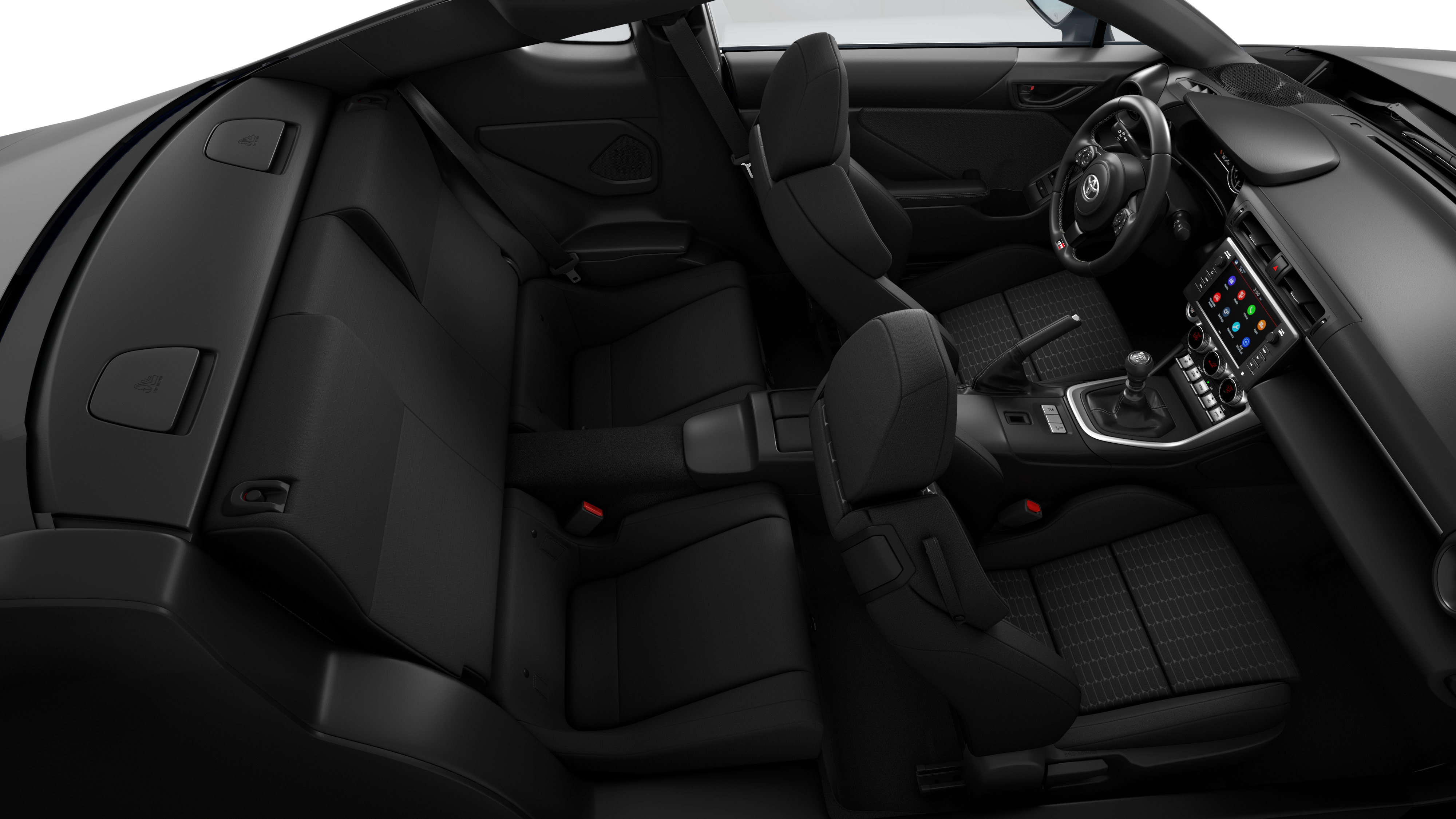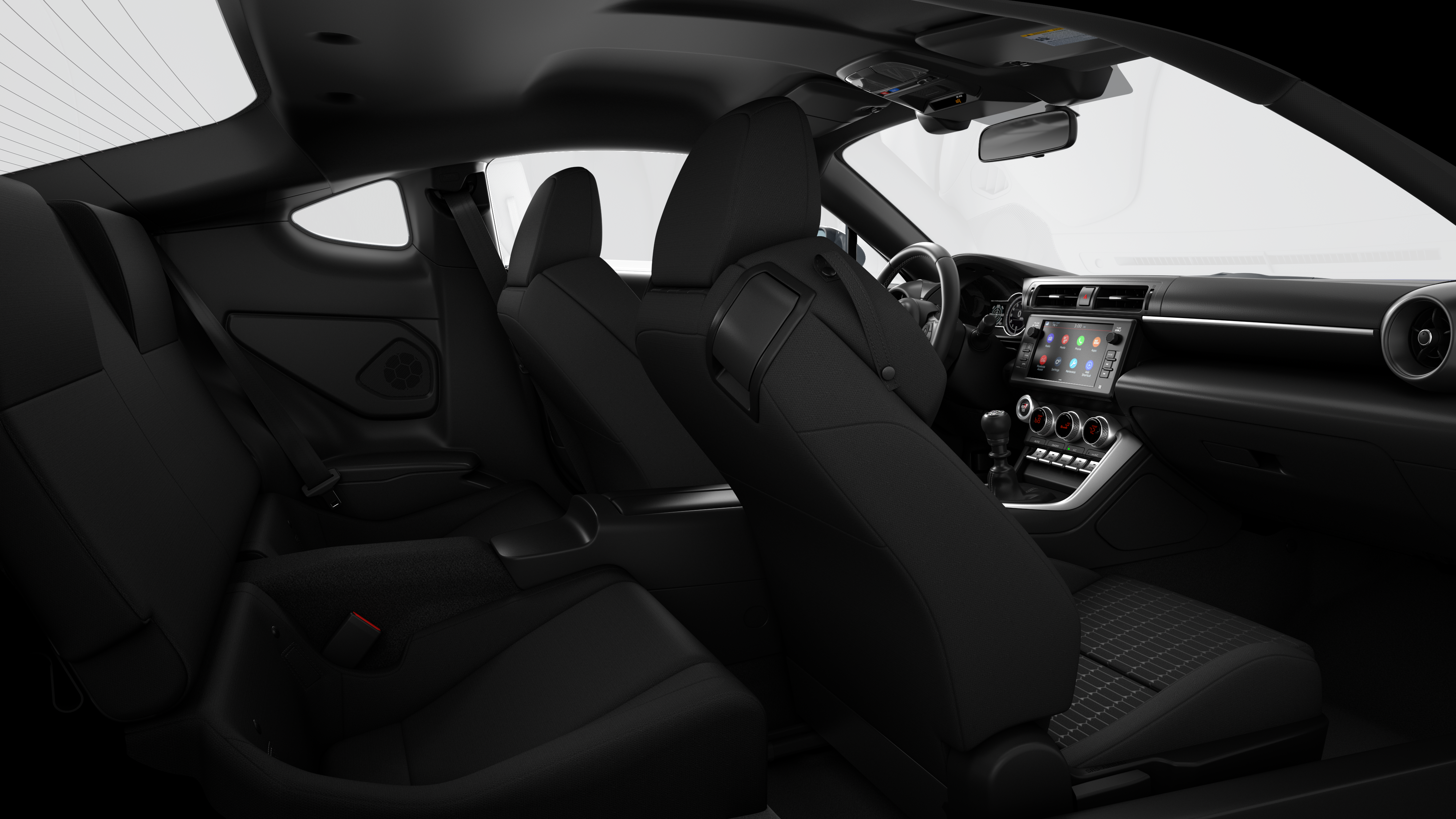 - GR86 Audio—includes 8-in. touchscreen, six speakers, Apple CarPlay® & Android Auto™ compatibility, SiriusXM® 3-month trial subscription. See toyota.com/audio-multimedia for details.